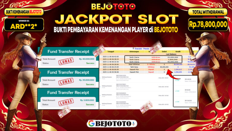 BEJOTOTO – Selamat kepada User id : ARD**2* Telah berhasil mendapatkan kemenangan besar pada permainan WILD BOUNTY SHOWDOWN Dengan kemenangan Sebesar Rp.78,800,000-. Setelah mengisi formulir withdraw dengan kurung waktu hanya 5 – 10 menit pihak BEJOTOTO sudah melakukan transfer kepada pemilik Userid dan dana sudah dapat di cairkan oleh pemenang. Bukti pembayaran yang kami berikan merupakan bukti pembayaran yang SAH / VALID yang…
