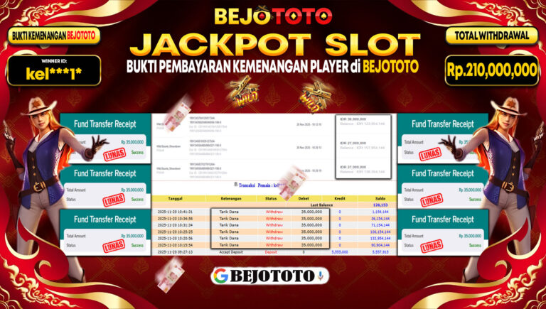 BEJOTOTO – Selamat kepada User id : kel***1* Telah berhasil mendapatkan kemenangan besar pada permainan WILD BOUNTY SHOWDOWN Dengan kemenangan Sebesar Rp.210,000,000-. Setelah mengisi formulir withdraw dengan kurung waktu hanya 5 – 10 menit pihak BEJOTOTO sudah melakukan transfer kepada pemilik Userid dan dana sudah dapat di cairkan oleh pemenang. Bukti pembayaran yang kami berikan merupakan bukti pembayaran yang SAH / VALID yang…