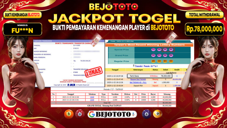 BEJOTOTO JACKPOT TOGEL TAIWAN Rp.78,000,000,- LUNAS!!