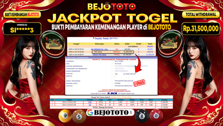 BEJOTOTO JACKPOT TOGEL TOTOMACAU 4D Rp.31,500,000,- LUNAS!!