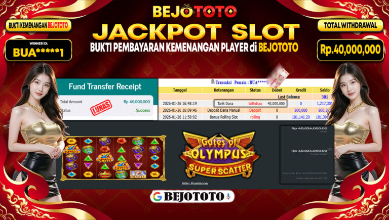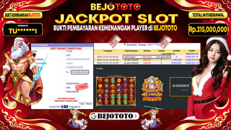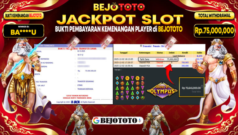 BEJOTOTO – Selamat kepada User id : BA****U Telah berhasil mendapatkan kemenangan besar pada permainan SLOT PRAGMATIC GATES OF OLYMPUS Dengan kemenangan Sebesar Rp.75,000,000,-. Setelah mengisi formulir withdraw dengan kurung waktu hanya 5 – 10 menit pihak BEJOTOTO sudah melakukan transfer kepada pemilik Userid dan dana sudah dapat di cairkan oleh pemenang. Bukti pembayaran yang kami berikan merupakan bukti pembayaran yang SAH /…