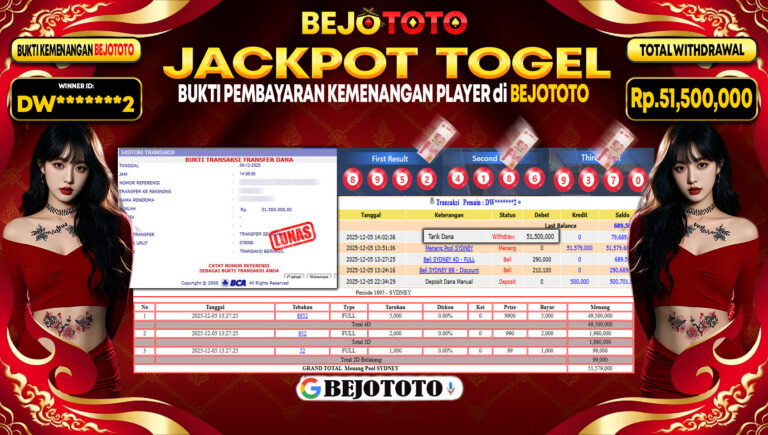 BEJOTOTO JACKPOT TOGEL SYDNEY LOTTO Rp.51,500,000,- LUNAS!!