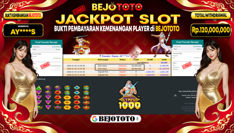 BEJOTOTO JACKPOT SLOT PRAGMATIC GATES OF OLYMPUS 1000 Rp.120,000,000,- LUNAS!!