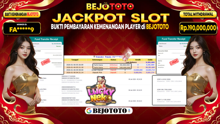 BEJOTOTO JACKPOT SLOT LUCKY NEKO Rp.190,000,000- LUNAS!!