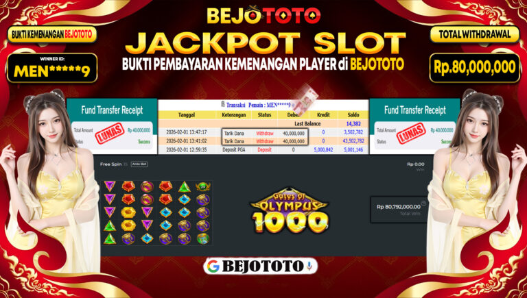 BEJOTOTO JACKPOT SLOT PRAGMATIC GATES OF OLYMPUS 1000 Rp.80,000,000,- LUNAS!!