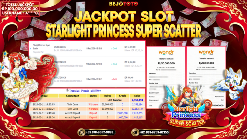 BEJOTOTO – Selamat kepada User id : A*****O Telah berhasil mendapatkan kemenangan besar pada permainan SLOT PRAGMATIC PRAGMATIC STARLIGHT PRINCESS SUPER SCATTER Dengan kemenangan Sebesar Rp.100,000,000,-. Setelah mengisi formulir withdraw dengan kurung waktu hanya 5 – 10 menit pihak BEJOTOTO sudah melakukan transfer kepada pemilik Userid dan dana sudah dapat di cairkan oleh pemenang. Bukti pembayaran yang kami berikan merupakan bukti pembayaran yang SAH / VALID yang langung di dapatkan melaui tanda transfer transaksi dari Bank yang di tuju.