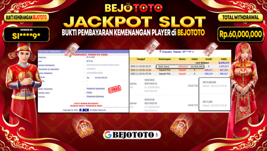 BEJOTOTO – Selamat kepada User id : SI****9* Telah berhasil mendapatkan kemenangan besar pada permainan  SLOT DOUBLE FORTUNE Dengan kemenangan Sebesar Rp.60,000,000-. Setelah mengisi formulir withdraw dengan kurung waktu hanya 5 – 10 menit pihak BEJOTOTO sudah melakukan transfer kepada pemilik Userid dan dana sudah dapat di cairkan oleh pemenang. Bukti pembayaran yang kami berikan merupakan bukti pembayaran yang SAH / VALID yang langung di dapatkan melaui tanda transfer transaksi dari Bank yang di tuju.